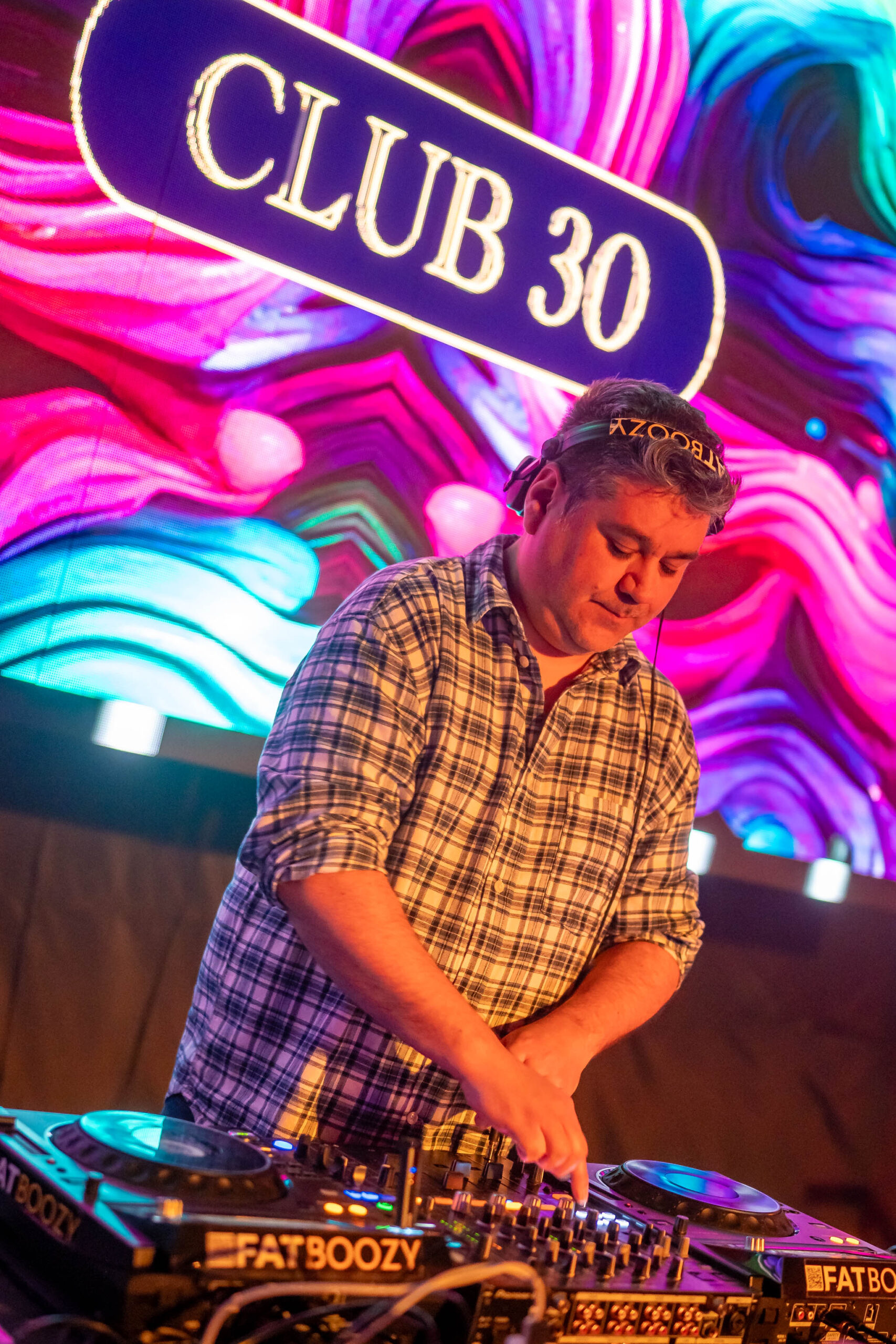 El line up de esta edición estuvo enfocado en mantener una pista activa, fluida y sin caídas durante toda la noche, con un DJ set diseñado para equilibrar nostalgia, hits y energía bailable en el momento justo: DJ FatBoozy, llevando la experiencia hacia un estándar donde la música no interrumpe la conversación, pero cuando es momento de bailar… la pista simplemente se llena.